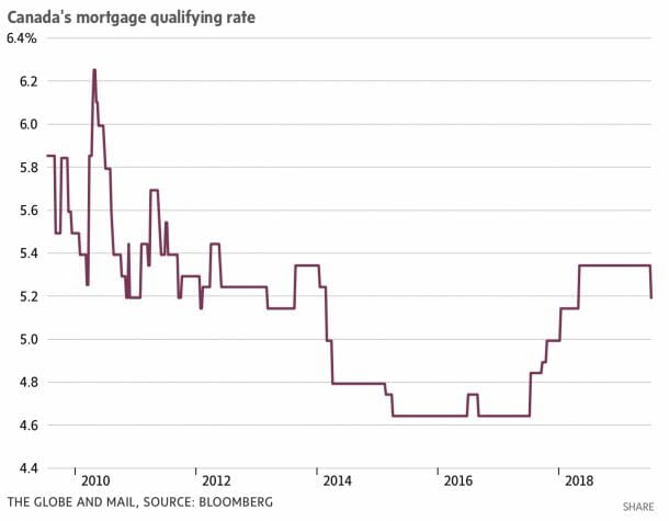 The qualifying rate had increased several times during 2017 and 2018 as the Bank of Canada raised its key interest rate, and as bond yields headed higher.