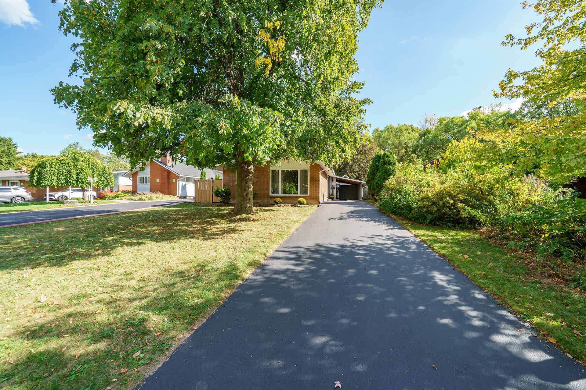 Outside, enjoy a private, park-like setting with mature trees, newer interlock paths, refreshed landscaping, and a peaceful patio area perfect for outdoor dining or relaxing. The carport and extra-long driveway provide parking for up to five vehicles.