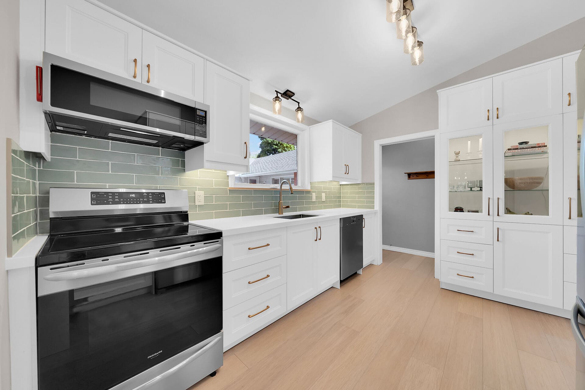 Stylishly updated and move-in ready, this Pleasant Valley home offers a perfect blend of modern comfort and timeless warmth on an extra-deep, tree-lined lot. Step inside through the welcoming foyer, leading to an updated kitchen and open-concept living and dining rooms enhanced with stunning vaulted ceilings and refinished hardwood floors—creating an airy, light-filled main level ideal for both everyday living and entertaining.