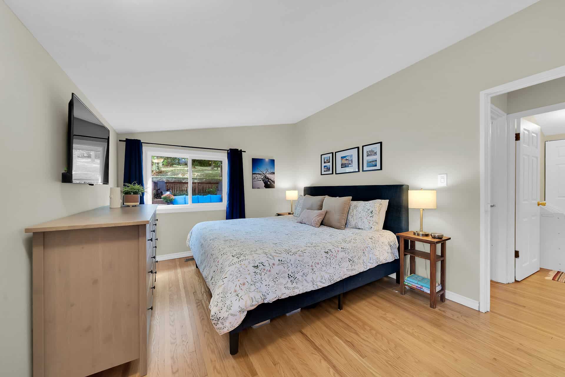 Upstairs, you’ll find three spacious bedrooms—each with beautiful hardwood floors and plenty of natural light. The generous proportions create comfortable retreats for every member of the family, with ample room for desks, reading nooks, or sitting areas.