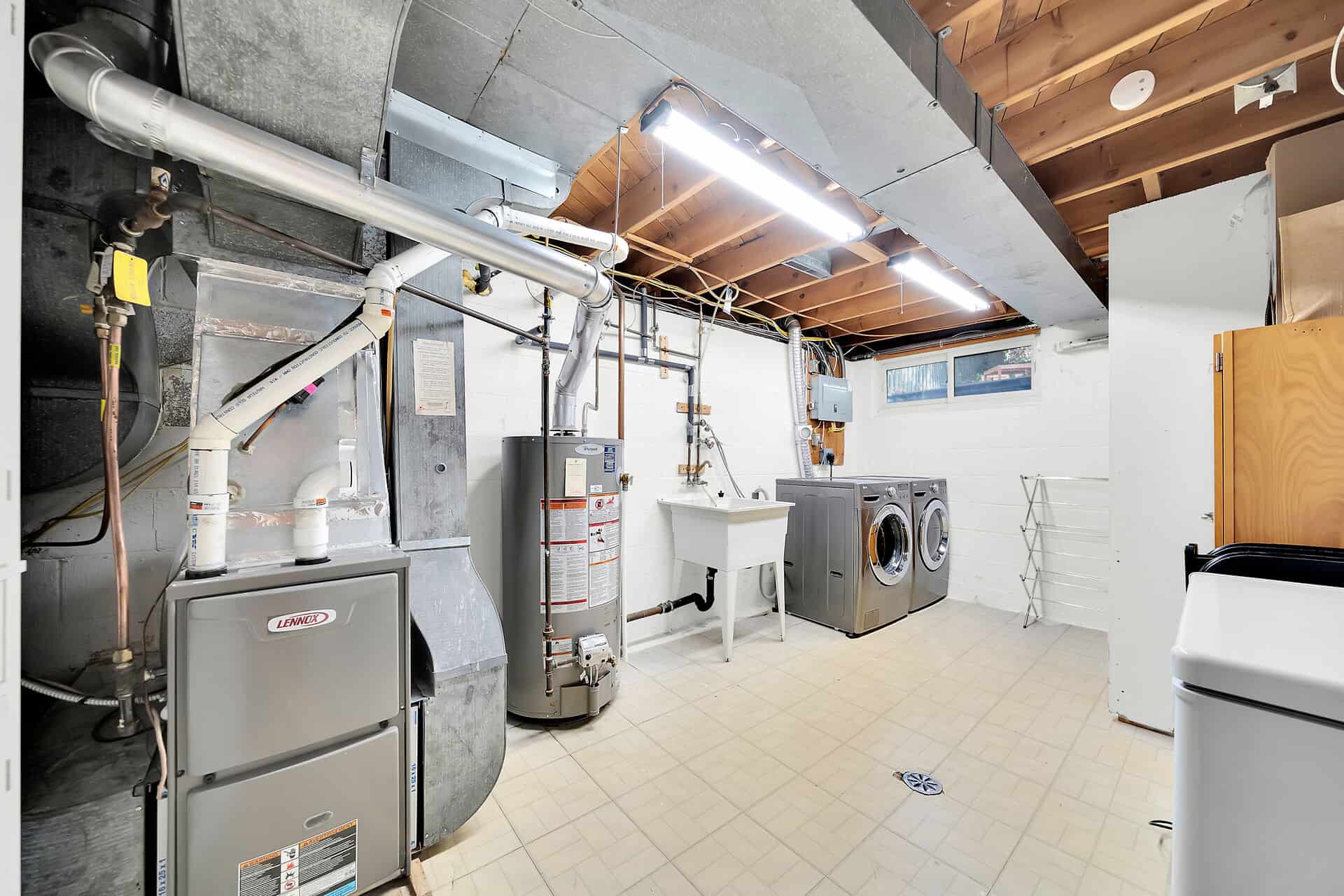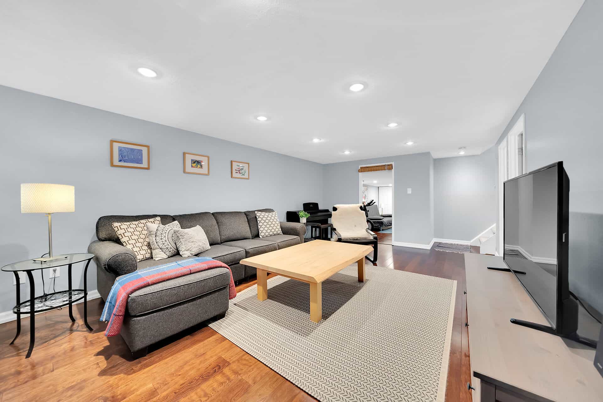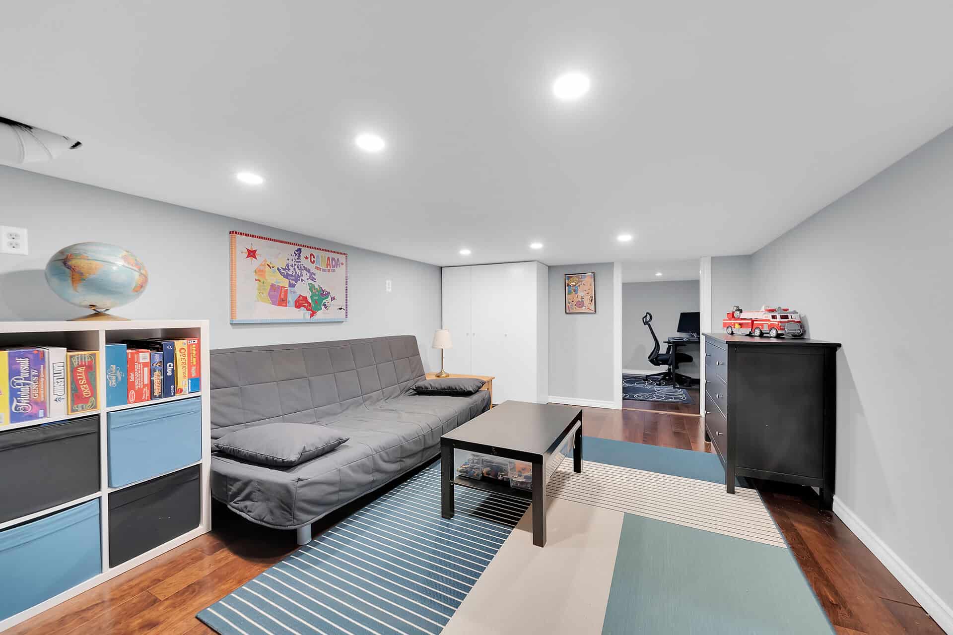 The lower level extends the living space even further with a bright recreation room anchored by a cozy gas fireplace, plus a large hobby or playroom, a separate den or home office, an additional two-piece bath, and a dedicated laundry area.