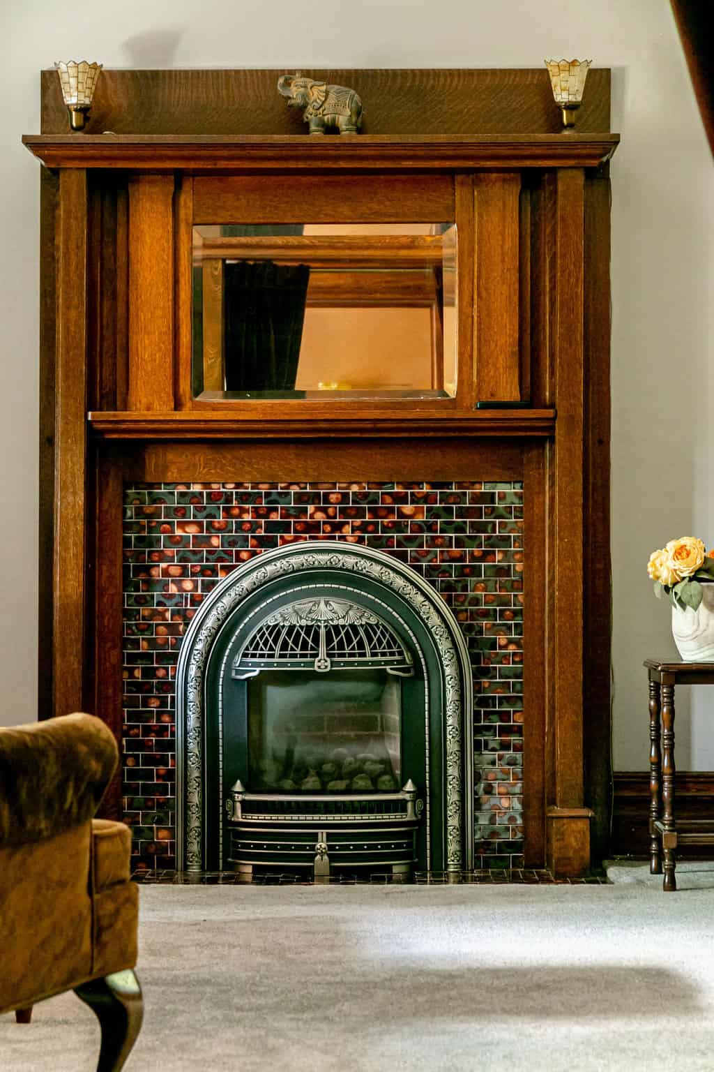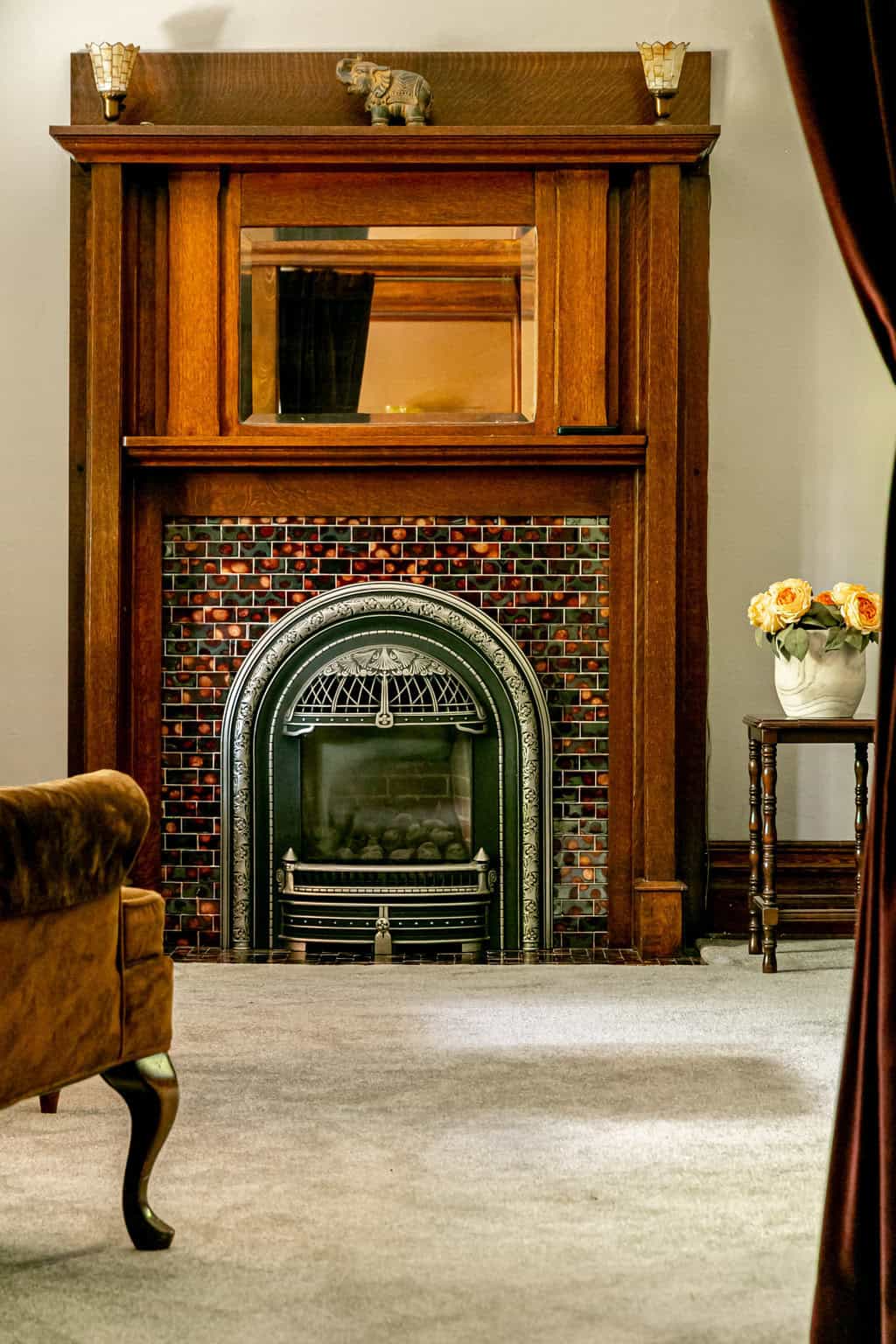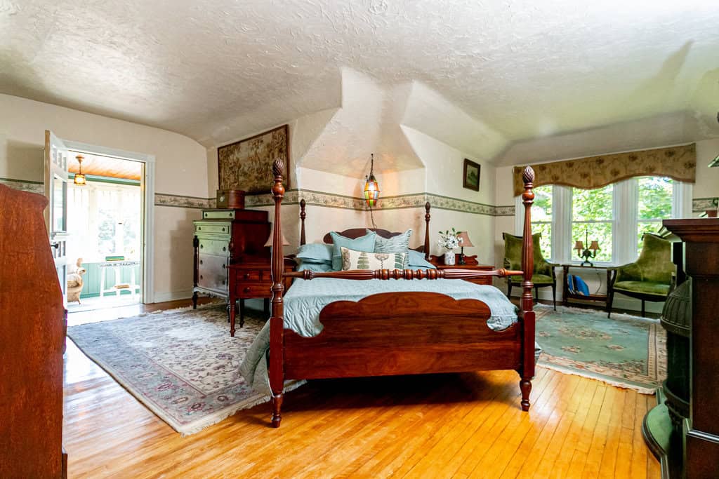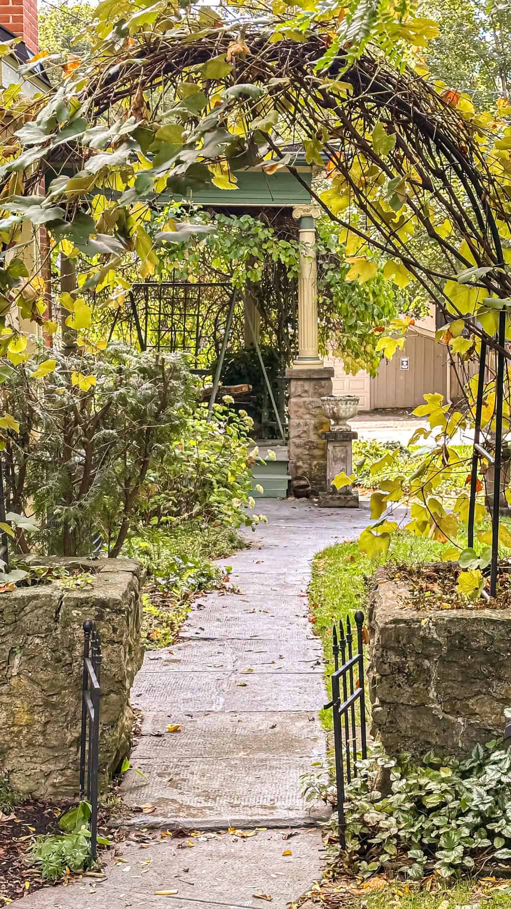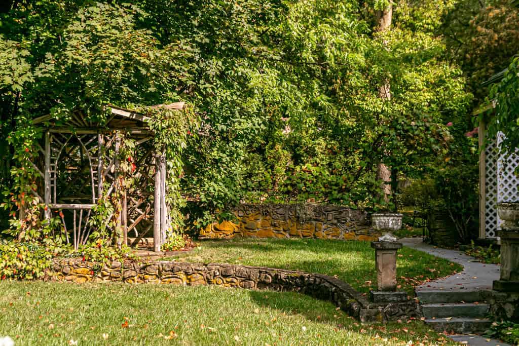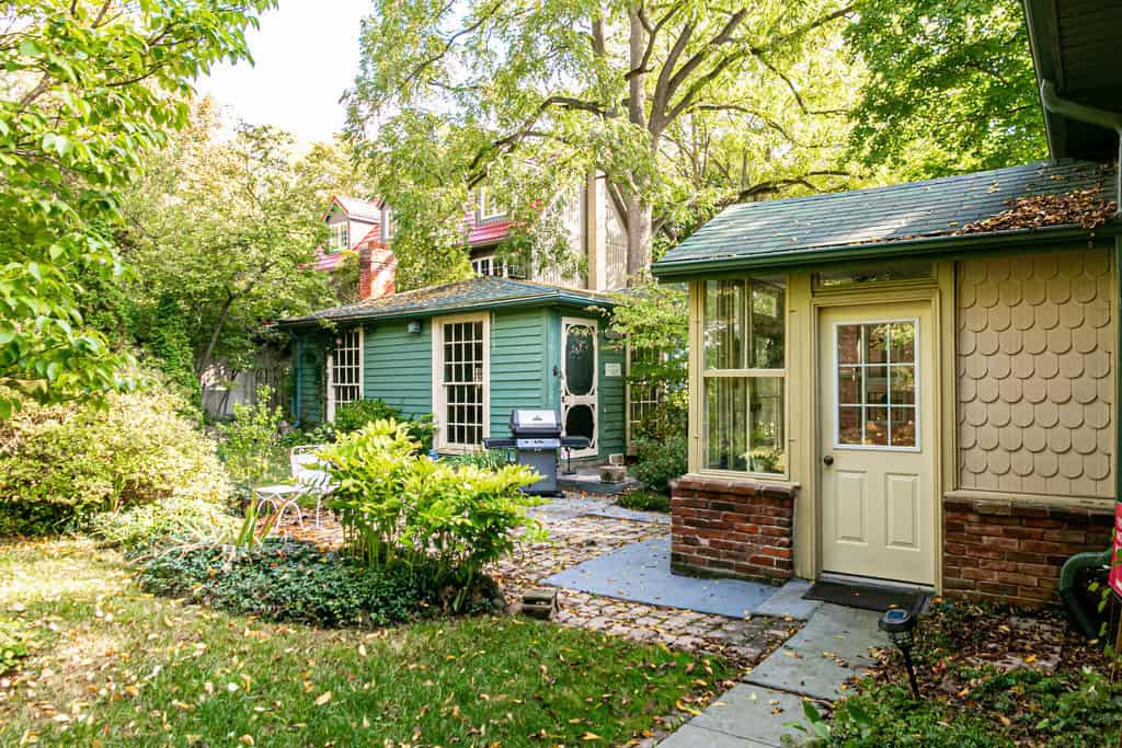 Inside, soaring 10’ ceilings, oak hardwood floors, and oversized windows create a bright natural flow. The main floor offers true one-floor living with a spacious front hall, elegant living room or office, sprawling family room with ornate gas fireplace, generous bedroom, and full bath. A butler’s pantry leads into the kitchen, filled with original character and framed by garden views. From here, step into the bright sun porch with walkout to the rear gardens. The separate dining room opens out to the side garden, where a 1920s gazebo and stonework create an enchanting, secret-garden setting—perfect for intimate gatherings or quiet reflection.