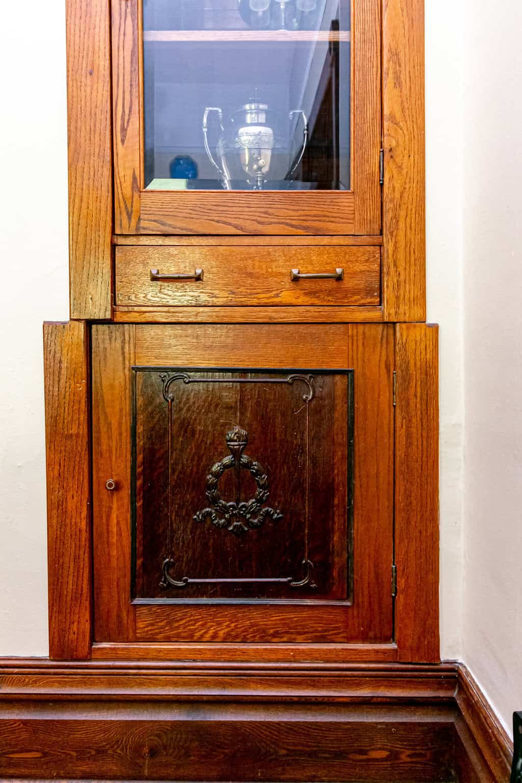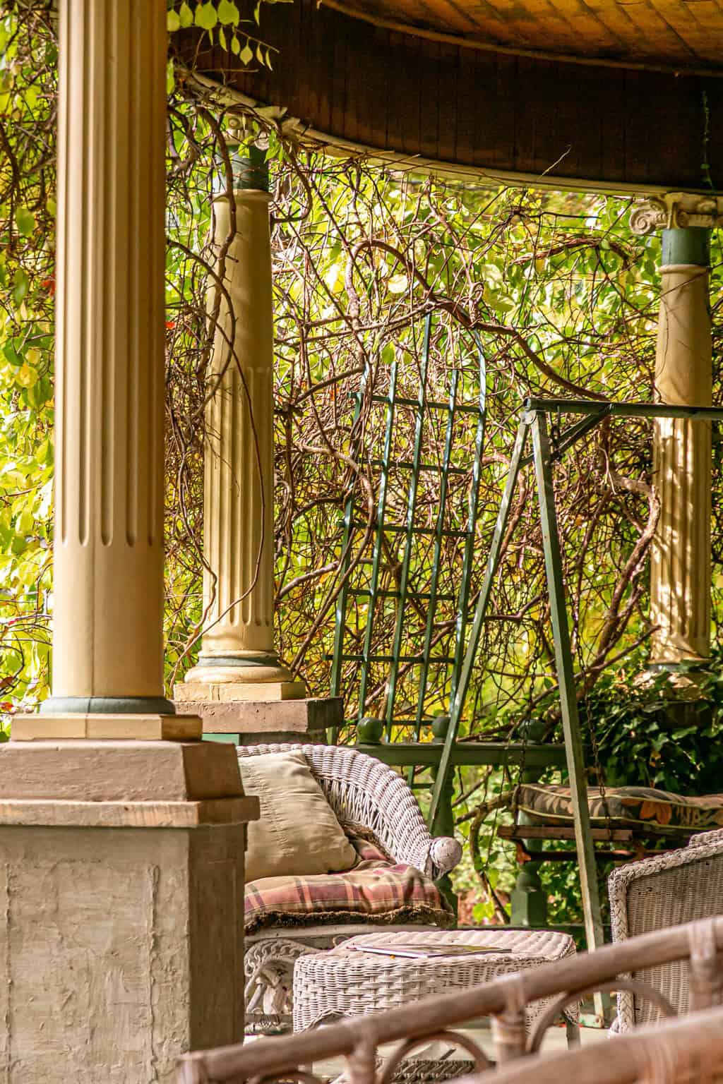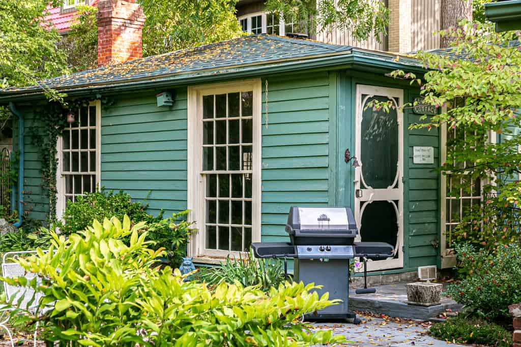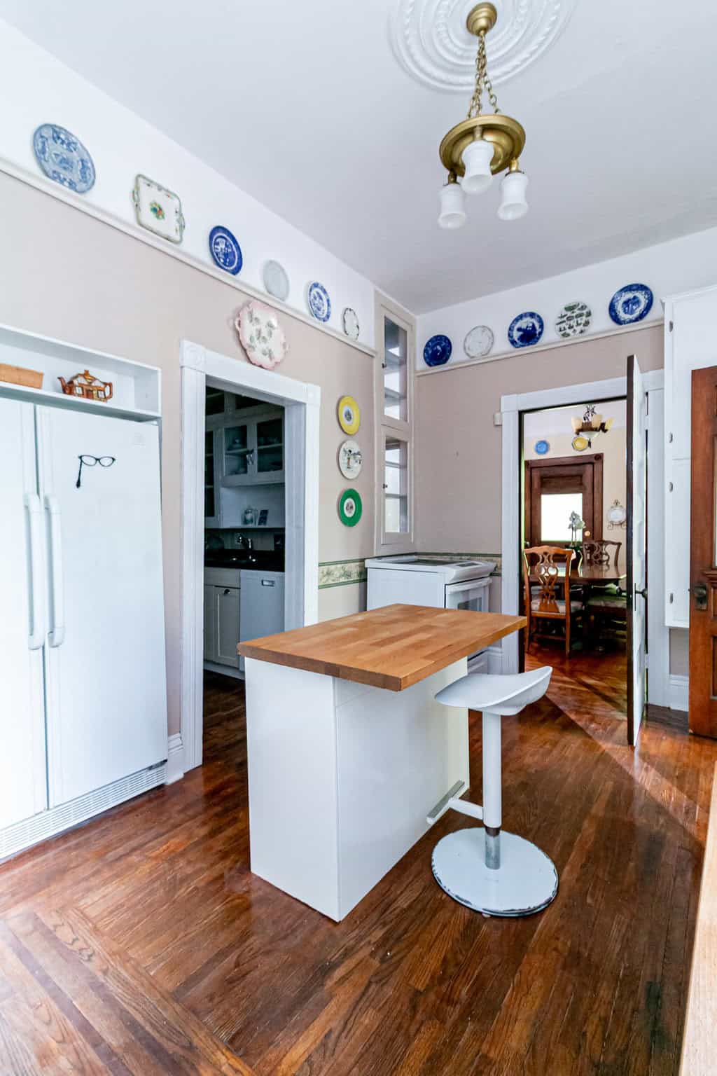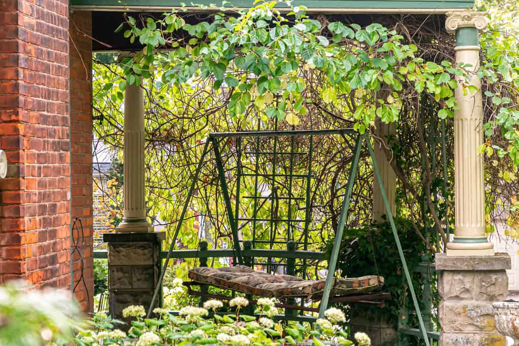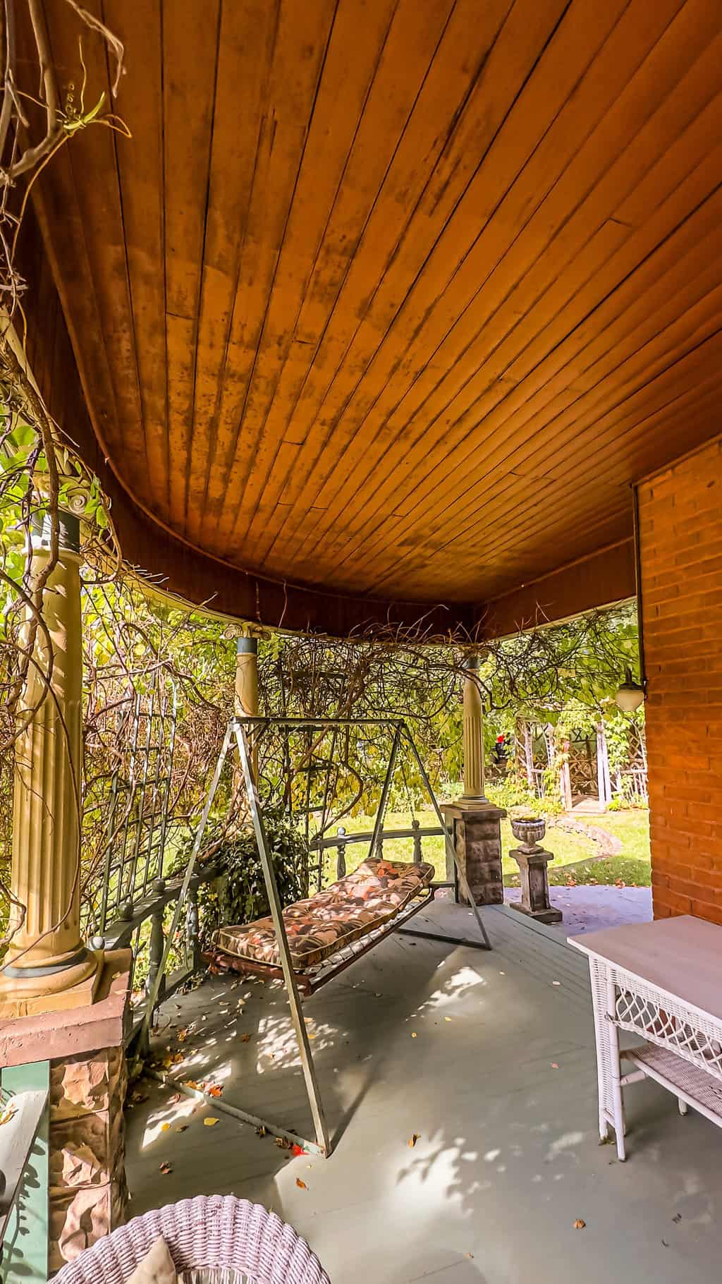 Inside, soaring 10’ ceilings, oak hardwood floors, and oversized windows create a bright natural flow. The main floor offers true one-floor living with a spacious front hall, elegant living room or office, sprawling family room with ornate gas fireplace, generous bedroom, and full bath. A butler’s pantry leads into the kitchen, filled with original character and framed by garden views. From here, step into the bright sun porch with walkout to the rear gardens. The separate dining room opens out to the side garden, where a 1920s gazebo and stonework create an enchanting, secret-garden setting—perfect for intimate gatherings or quiet reflection.