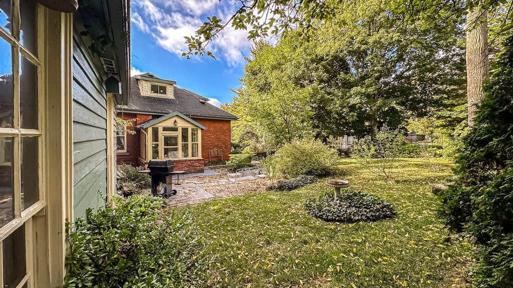 The lower level provides laundry, storage, and walk-up access to the yard. Outdoors, mature gardens, multiple sitting areas, a powered garage and separate studio space (circa 1864), long driveway add practicality and flexibility. Set on a rare double-wide lot of more than 0.25 acre, this property offers space, privacy, and presence rarely found in Dundas.